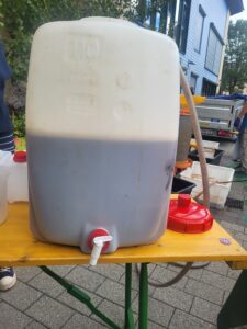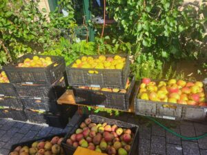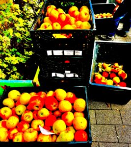 Im Vorfeld haben die Kinder fleißig Äpfel gesammelt, um am Herbstmarkt selbst Apfelmost zu keltern.
