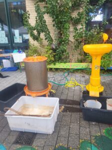 Dieses Jahr fand der Herbstmarkt am Samstag, 27.09. von 12 – 15 Uhr bei herrlichem Sonnenschein statt. Es gab wieder einen Barfußpfad für die Kinder, Kerzenziehen und verschiedene Bastelangebote. Auch das traditionelle Angebot, Apfelsaft selbst zu keltern, wurde wieder sehr gern von den Kindern angenommen.
